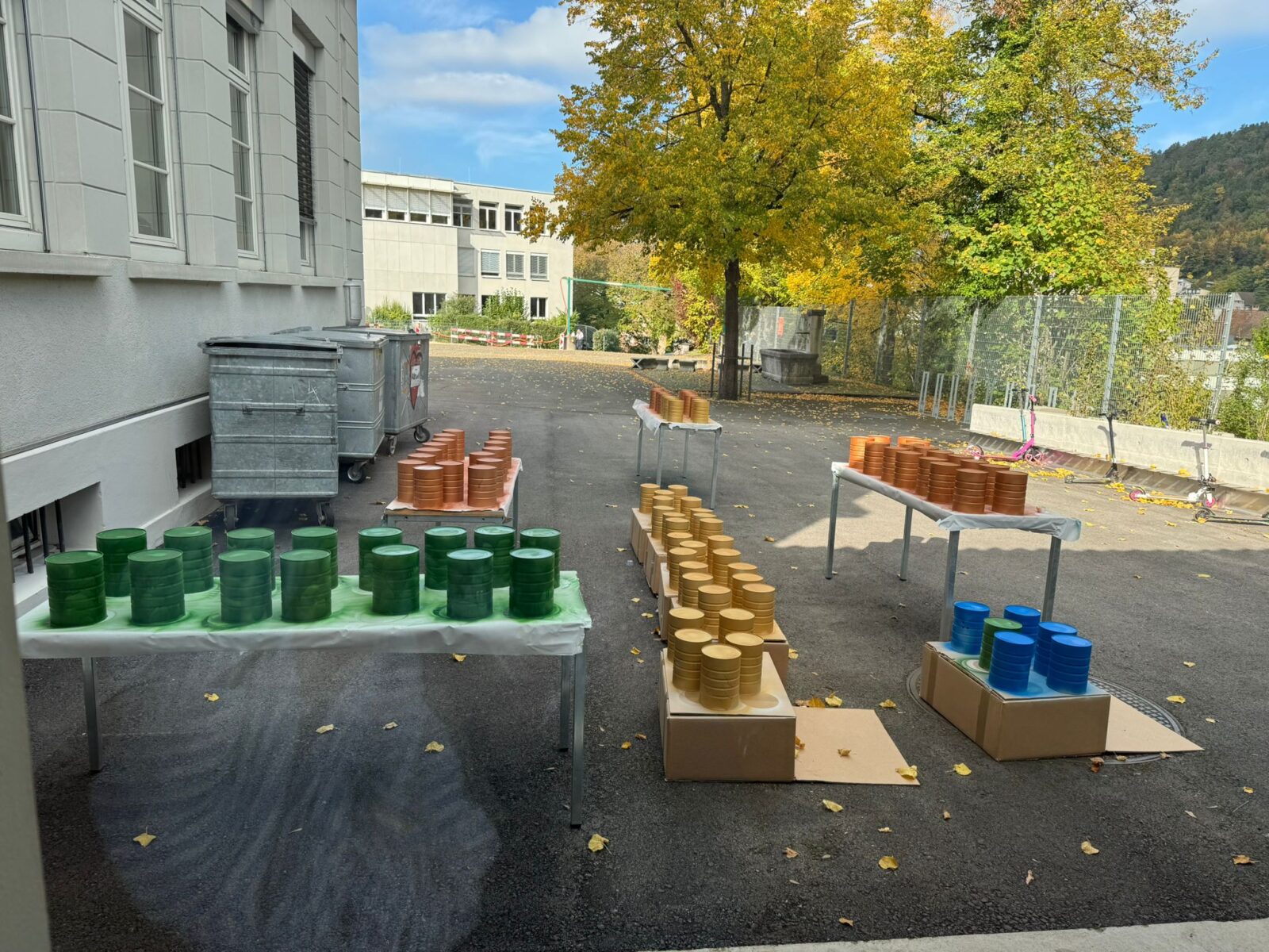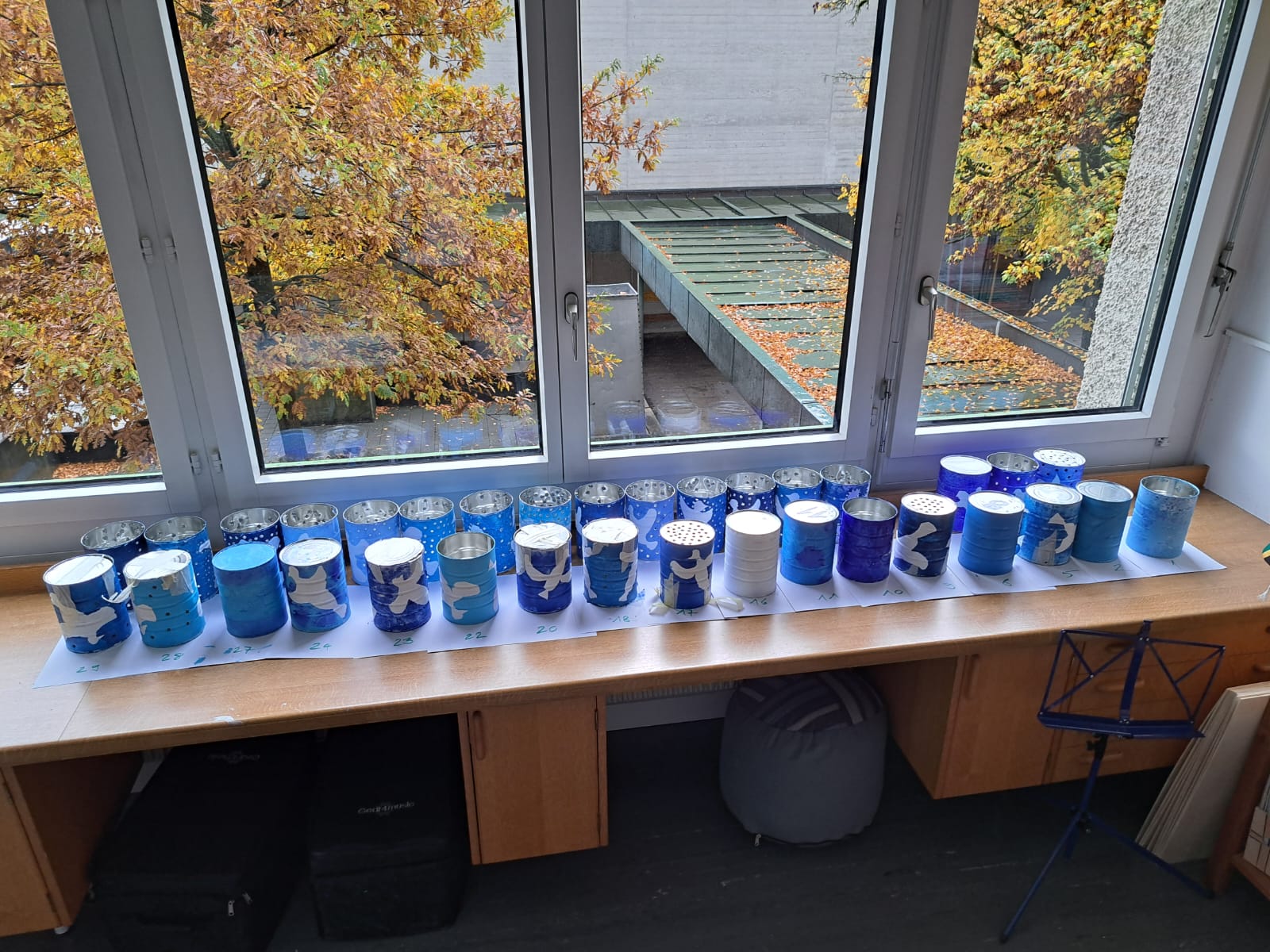 Insgesamt 26 Klassen mit 432 Kindern aus den Schulhäusern Gestadeck, Frenke, Rotacker, Fraumatt und Mühlematt gestalten derzeit 432 Laternen aus 2-Liter-Büchsen.