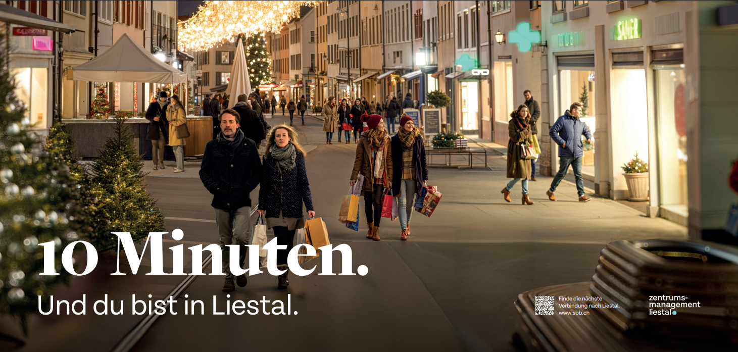 Mehr entdecken. Mehr erleben. Liestal. In dieser besonderen Zeit zeigen wir dir, wie lebendig, zugänglich, echt und herzlich unser Zentrum ist. Winterliche Atmosphäre, vielfältige Angebote und kurze Wege machen Liestal zum idealen Treffpunkt in der Weihnachtszeit.